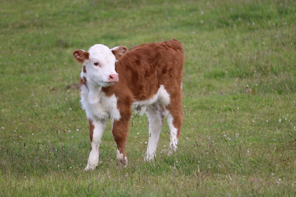 This miniature Hereford cow is a hardy and versatile breed, perfect for diverse farming needs.